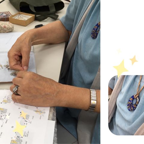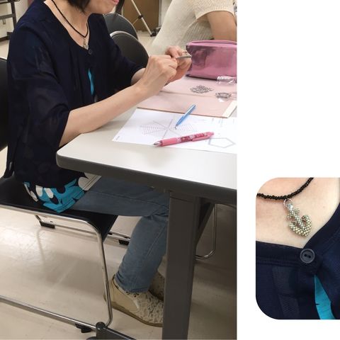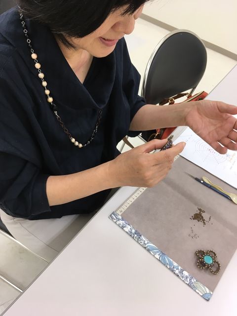 ちらっと映ってる黒いセーターの生徒さんは、ビーズ愛強くご熱心!!
